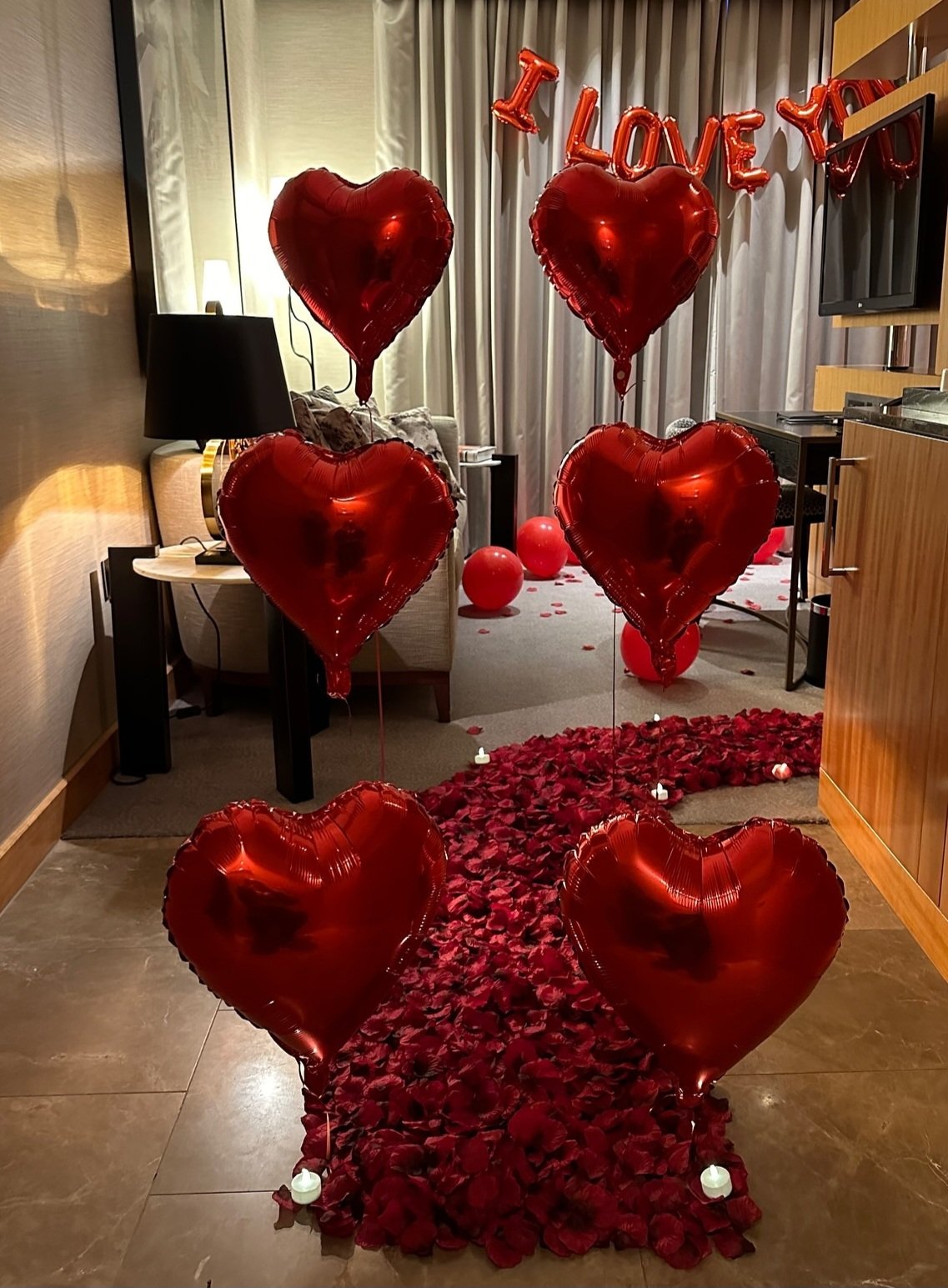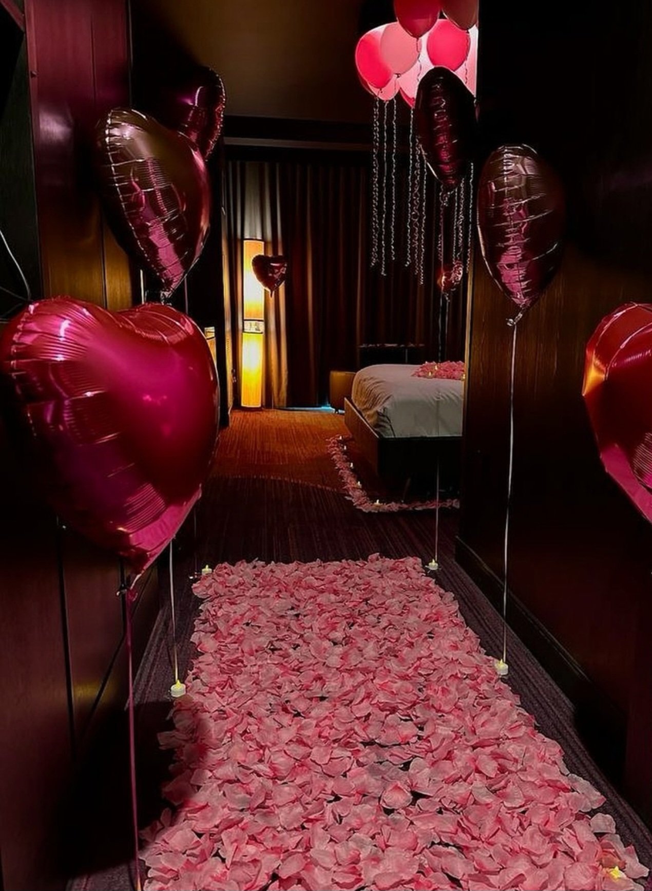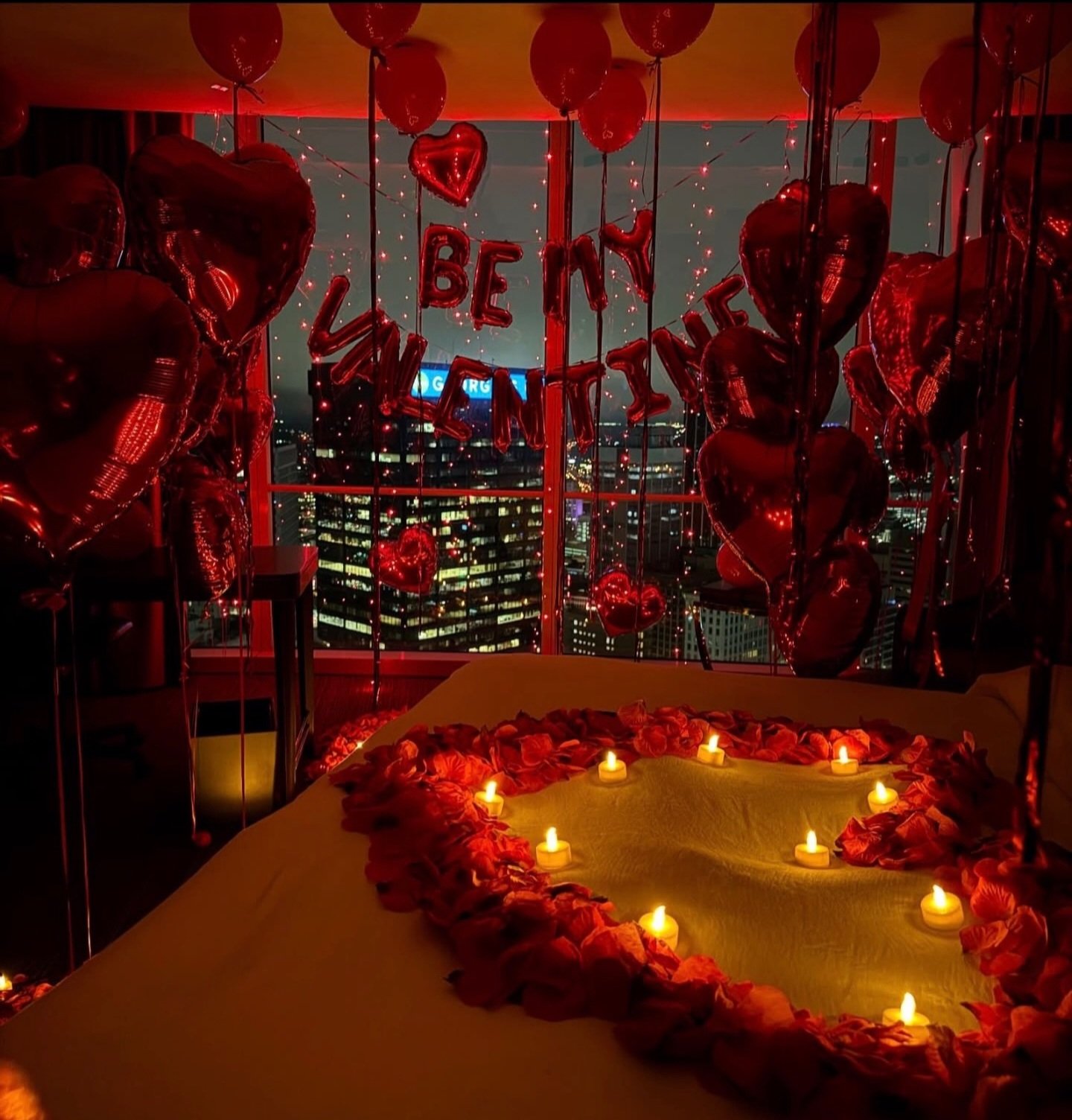 A grand, indulgent Valentine’s room transformation created for those who want nothing but the extraordinary. This signature experience features a dramatic rose-petal walkway, heart-shaped petal designs, glowing candlelight, and a spa-inspired bathtub décor—curated to deliver a breathtaking, unforgettable celebration of love.