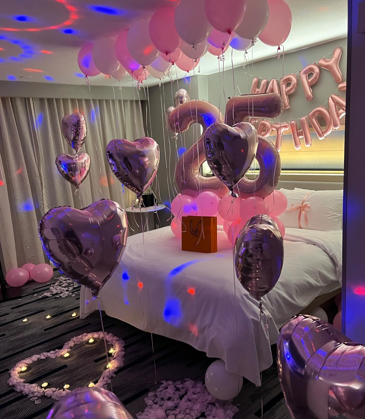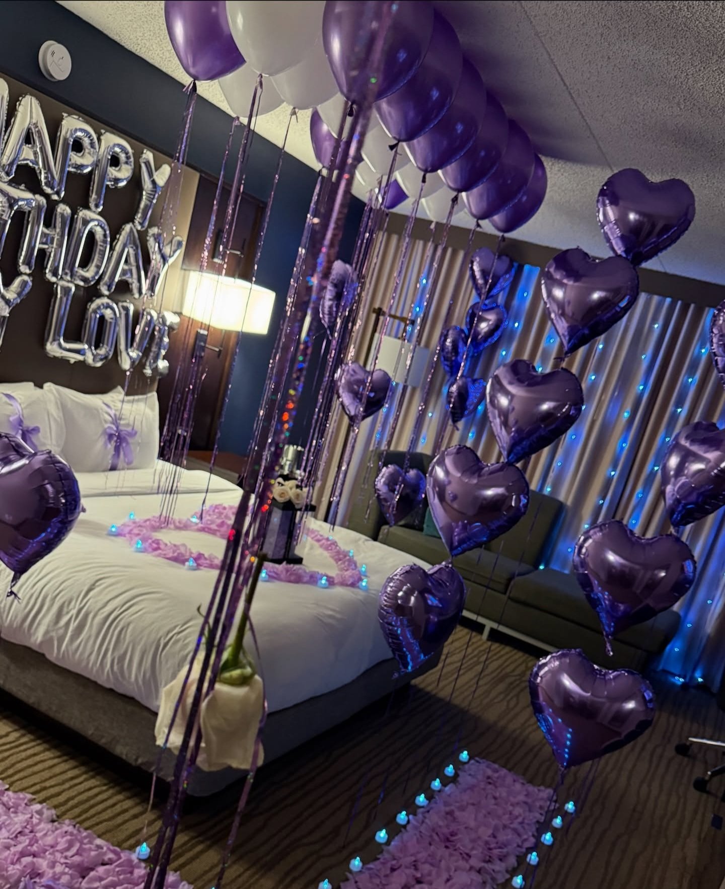 Our most extravagant birthday transformation. Includes a full-room balloon ceiling and floor, heart bouquets, and luxury accents for that “Wow” factor.